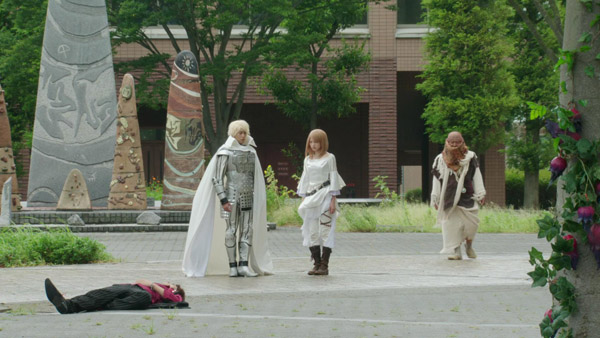 ส่วน “หญิงสาวลึกลับ” ก็คือวิญญาณของไม ที่ติดอยู่ในกระแสของกาลเวลา เพื่อไม่ให้เกิดเรื่องซ้ำรอยเดิม เธอจึงย้อนไปในอดีตเพื่อห้ามโคตะ และไรเดอร์ทุกคนไม่ให้ต่อสู้กันเอง แต่สุดท้ายก็ล้มเหลว เพราะทุกอย่างยังเป็นไปตามกระแสของเวลาเดิม ส่วนศพของไมก็สลายไป จนไมไม่ใช่มนุษย์อีกแล้ว ทำให้ ไม เหลือหน้าที่สุดท้ายก็คือ “การส่งมอบผลไม้ทองคำให้ผู้ที่เหลือรอดคนสุดท้าย” ซึ่งผลลัพท์ก็คือ โคตะสามารถเอาชนะไคโตะ จนกลายเป็น “ชายแห่งการเริ่มต้น” เมื่อสิ้นสุดภารกิจ ทั้งคู่จึงเดินทางไปยังดาวที่ห่างจากโลก เพื่อเริ่มต้นชีวิตใหม่