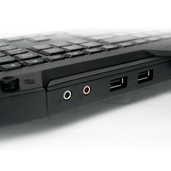 ด้านหลังก็มีฮับสำหรับไว้เสียบพอร์ต USB ได้อีก 2 พอร์ต แถมยังมีเมมโมรี่หน่วยความจำในตัว 64KB และยังมีซาวการ์ดที่สามารถเชื่อมต่อหูฟังของคุณได้ในตัวอีกด้วย