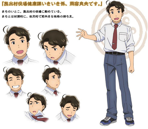 เจ้าหน้าที่ผู้ดูแลหมู่บ้านคุมาเดะ ชายหนุ่มอัธยาศัยดี เข้ากับคนง่าย ผู้มีร้อยยิ้มบนใบหน้าเสมอ และมาพร้อมพลังแห่งความกระตือรือร้นต่อการทำงานเหลือล้น แต่เห็นแบบนี้ พ่อหนุ่มก็พร้อมสติแตก สวมบทโหดขึ้นมา หากต้องเผชิญกับสถานการณ์เลือกปฏิบัติแบบไม่มีเหตุผล