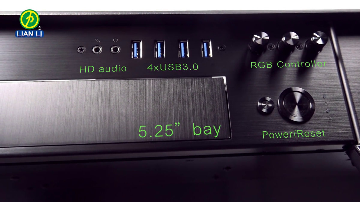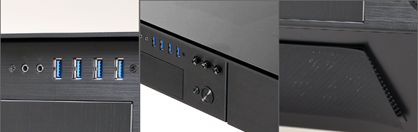 ส่วนพอร์ตการเชื่อมต่อที่จำเป็น จะถูกรวบรวมไว้ที่แผงด้านหน้าทั้งหมด อาทิ ช่องไดรฟ์ใส่แผ่น, ตัวปรับพัดลม, ช่องพอร์ต Audio, ช่อง USB 3.0 จำนวน 4 พอร์ต, ตัวปรับ RGB สำหรับคนที่อยากติดแสงไฟ LED เพิ่มเติม