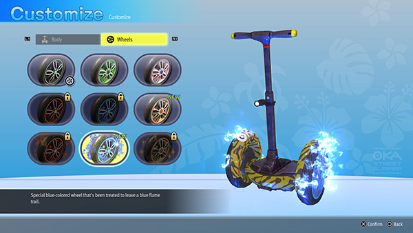 นอกจากนี้ คุณยังสามารถปรับแต่งตัวถังและล้อของ Street Surfer ของคุณได้ ดังนั้นควรปรับเปลี่ยนให้เป็นแบบที่คุณชื่นชอบ และสนุกกับการบิดรถแว้นไปทั่วฮาวาย