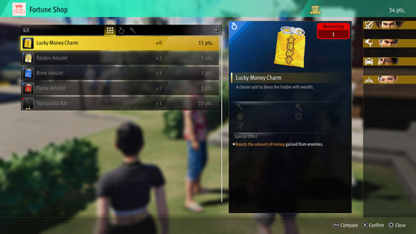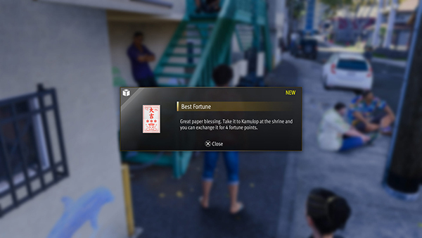 Kamulop ผู้ซึ่งเคยขอให้ คาสึกะ รวบรวมตราประจำตระกูล Tojo ในโยโกฮาม่าด้วยเหตุผลบางอย่าง แต่ตอนนี้ดูเหมือนว่าจะเริ่มทำงานเป็นมาสคอตประจำศาลเจ้าแห่งหนึ่งในฮาวายแล้ว ถ้าคุณคุ้ยหาเศษเซียมซีที่ร่วงตามถนน แล้วมอบให้ Kamulop ก็จะได้ “คะแนนโชคลาภ” เอาไว้แลกเปลี่ยนเป็นอาวุธและเครื่องรางอันทรงพลัง เสริม Stats ตัวละครได้
