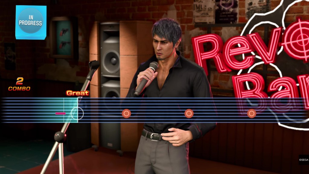 Revolve บาร์ คาราโอเกะเรียบง่ายที่คิริวได้ซ่อนตัวอยู่ในมุมหนึ่งของ Little Japan คุณสามารถนำวัตถุดิบที่ดรอปมาได้ มาให้ บาร์เทนเดอร์ และเขาจะทำให้มันกลายเป็นอาหารชนิดใหม่ หรือจะแวะพูดคุยกับสาวบาร์ “เคย์” ก็ได้ (โมแคปโดย KSon ยูทูปเบอร์คนดังของญี่ปุ่น)