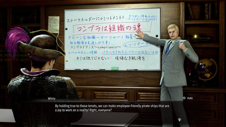 ตัวเกมจัดว่านำเสนอเรื่องราวที่มีสีสันโดยผสมผสานระหว่างความขัดแย้งในวงการยากูซ่า และผลกระทบจากการล่มสลายของระบบยากูซ่าในญี่ปุ่นที่ส่งผลมาถึงภาค 8 ที่ได้รับการต่อยอดให้เห็นอีกมุมมองหนึ่ง อันเป็นผลลัพท์สืบเนื่องหลังจากจบภาคหลัก แล้วเอามารวมกับความมีเสน่ห์ของโจรสลัด ที่เผลอๆ ทำออกมาได้ “ถึง”กว่าเกมที่เคลมว่าเป็นโจรสลัดแท้ๆด้วยซ้ำในบางแง่มุม