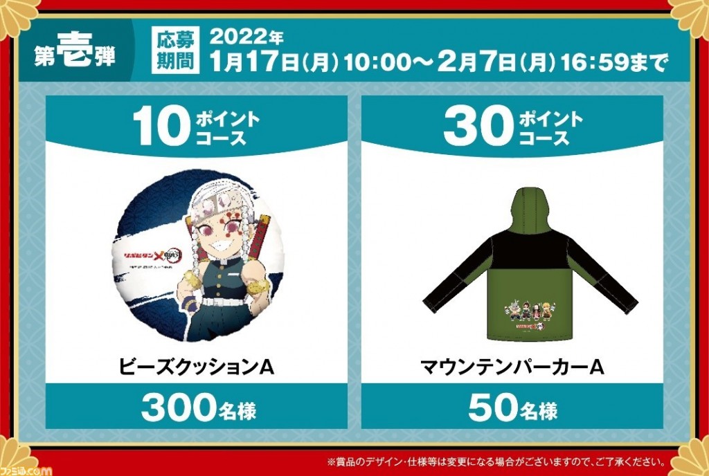 ซึ่งแต่ละแพ็คเกจมีการออกแบบที่มีตัวการ์ตูนดัง ทั้ง ทันจิโร่ /เนซึโกะ /อิโนะสุกะ /เซนอิทสึ และอสูรตัวอื่นๆ รวมไปถึงเหล่าเสาหลักด้วย