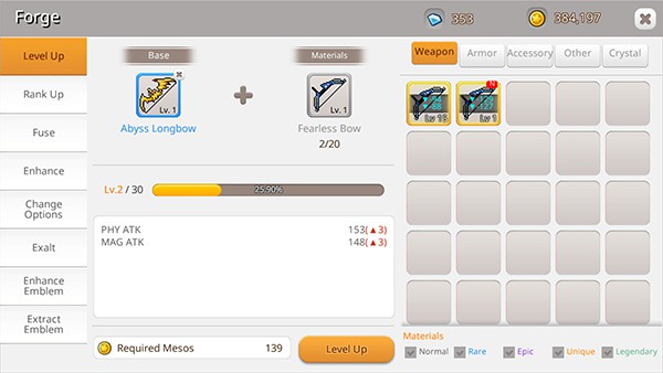 ไอเทมที่ไม่ใช้งาน สามารภนำมาใช้เป็นวัตถุดิบในการอัพเกรดสิ่งของได้ด้วย