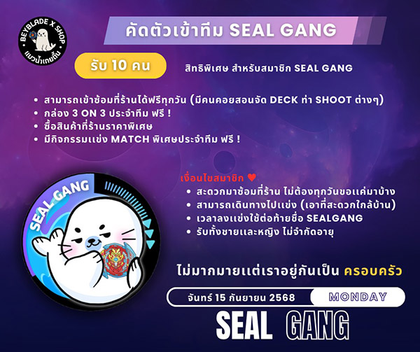 #sealgang#แก๊งค์แมวน้ำ#แก๊งค์แมว#ม้าไม้การ์เด้นท์เซ็นเตอร์#แมวน้ำxbeybladeshop#แมวน้ำshop#แมวน้ำเกยตื้น