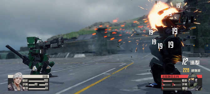 หากคุณเลือกคำสั่งโจมตีใส่ยูนิตศัตรูที่อยู่ในระยะอาวุธที่ติดตั้ง ฉากการต่อสู้ระหว่างหุ่นยนต์ก็จะถูกแทรก และจะสร้างความเสียหายให้กับแต่ละส่วนของร่างกาย แขนขวา แขนซ้าย และขา และบอดี้หลัก ถ้าบอดี้ HP เหลือ 0 หุ่นจะระเบิด และมีการคิดค่าเสียหายหลังจากจบด่าน หรืออาจจะถึงขั้น Game Over ตามแต่เงื่อนไขของด่านนั้นๆ ซึ่งเป็นความสนุกของเกมสไตล์ Front Mission แบบดั้งเดิมเอาไว้อย่างครบถ้วน แม้ว่าจะไม่ได้ใช้ชื่อเกมดังกล่าว และฉีกจักรวาลเรื่องราวด้วยเนื้อหาใหม่ทั้งหมด ไม่เกี่ยวกับภาคใดเลยก็ตาม…