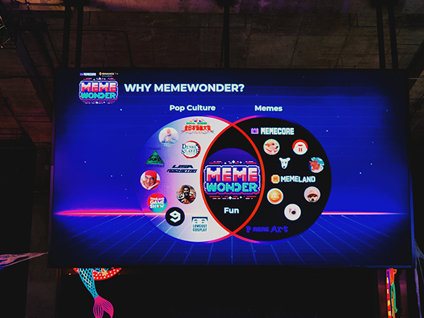 MemeWonder คืองานเทศกาลมีมที่นำ ‘เทรนด์วัฒนธรรม’ เป็นสะพานไปสู่ ‘อนาคตของการเงินและเทคโนโลยี’ โดยจัดขึ้นผ่านการรวบรวมมุกขำขันล้อเลียนที่สะท้อนถึงความคิดและมุมมองทางวัฒนธรรมในโลกอินเทอร์เน็ต จนไปสู่การเกิดเหรียญมีม (Memecoins) หรือเหรียญ Token ที่เกิดจากมีม ที่เป็นที่เป็นโครงสร้างพื้นฐานของโลกอินเทอร์เน็ต Web 3 โดยในงาน MemeWonder จะนำเสนอความบันเทิงแบบมีม ๆ ในทุกรูปแบบทั้งโชว์จากศิลปิน เกมโชว์ อีสปอร์ต และทอล์คจากแนวหน้าของวงการ