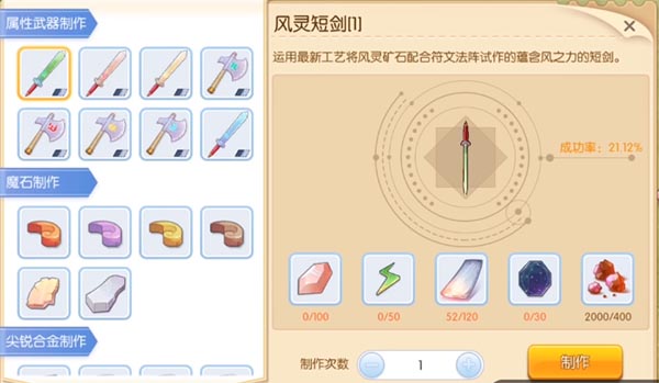 Weaponary Research 10 / Smith Weapon 10 / Metal Research 10 / Enchance Stone Craft 10 / Refine Expert 10