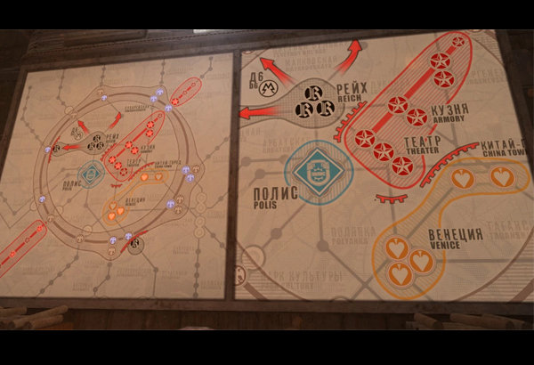 ข่าน พาเขาไปที่ Kitai-Gorod ซึ่งถูกควบคุมโดยแก๊งอาชญากร แต่พวกเขาก็แยกกันระหว่างการโจมตีโดยกองกำลัง Fourth Reich และอาร์ตียอมถูกจับกุม โดยมีโทษประหารรออยู่ข้างหน้า ซึ่งก่อนการประหารอาตียอม ก็ได้มีกลุ่มคณะปฏิวัติ Red Line เข้ามาขัดจังหวะ อาร์ตียอมจึงถูกทิ้งไว้ที่สถานี Paveletskaya แล้วหนีออกมาได้และเส้นทางของเขาไปยังสถานี Polis ก็ถูกขวางโดย “ฮันซา” (Hansa) ที่ควบคุม Koltsevaya Line เขตชายแดนที่เข้มงวด