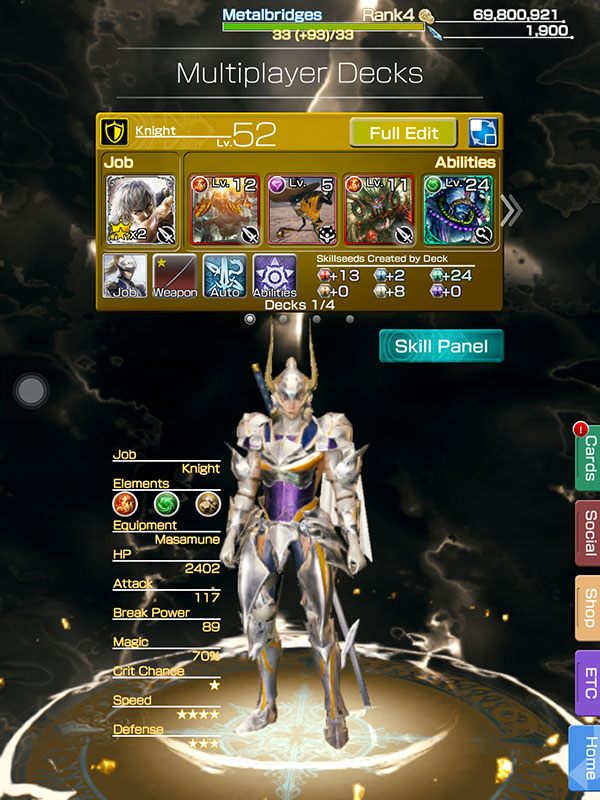 7. Deck Player ข้อมูลระบุอาชีพและการ์ดที่สวมใส่อยู่ โดยใน Slot แรกสุด (จากซ้าย) จะเป็นช่องที่ให้ค่า EXP มากที่สุด เหมาะสำหรับใส่การ์ดที่ต้องการปั้มระดับเลเวลให้เร็วขึ้น