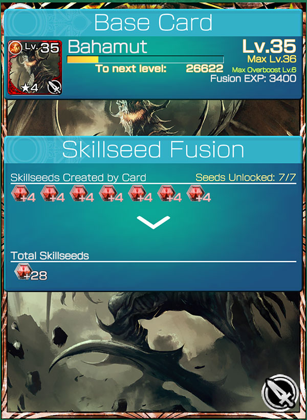 เป็น Element ของธาตุที่ได้จากการ์ดใบนั้นๆ ผู้เล่นจะได้ Skill Seeds หลังจากการต่อสู้จบลง และยังสามารถเพิ่มอัตราการดรอปขอ งSkill Seeds ได้ด้วยการ Fusion ซึ่งเมื่อใช้การ์ดชนิดเดียวกัน Fusion จะมีอัตราความสำเร็จที่สูงขึ้นด้วย