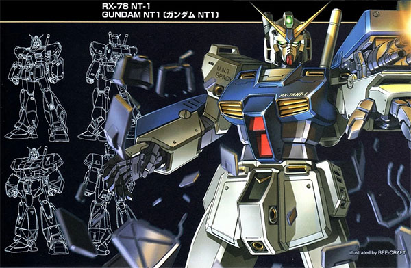 RX-78NT-1 Gundam “Alex” หุ่นจากอนิเมตอนพิเศษ   Mobile Suit Gundam 0080: War in the Pocket OVA กับหุ่นที่ถูกสร้างขึ้นมาเพื่อตอบสนองกับความสามารถของ อามุโร่ เรย์ นักบินนิวไทป์ของสหพันธ์โลก