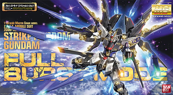 อีกกล่องที่ออกมาในขนาด MG เช่นกันคือ Strike Freedom Full Burst Mode ที่เพิ่มรายละเอียดปีกฟันเนลที่สจริงขึ้น และโครงหุ่นยังเป็นสีทองประกายแวววับที่สวยขึ้นมาก ในราคาที่แพงกว่านิดหน่อย