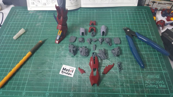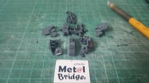 ส่วนนี้ประกอบไม่ยากครับ เพราะชิ้นน้อย แต่จะงงตรงที่มันมีกลไก ยืดออกตอนแปลงร่างนี่และ เพราะ “เดือย” ทั้งหน้าหลังต่างกันนิดเดียว ถ้าไม่สังเกตุดีๆเวลาประกบลงไปแล้วก็จะยืดออกไม่ได้ ทำให้ต้องแกะออกมาต่อใหม่