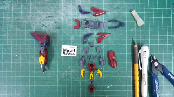 แขนทั้ง 2 ข้างจะไม่มีเฟรมด้านในนะครับ จะเป็นข้อพับให้ประกอบออกมาเป็นแขนเลย ส่วนดีเทลต่างๆก็แทบไม่มีอะไรเลย ต้องติด “ดีคอล” ถึงจะสวยงามครับ