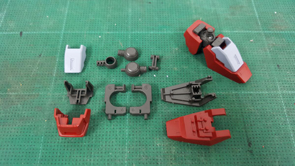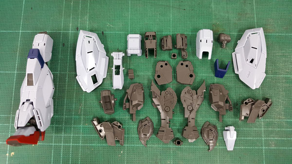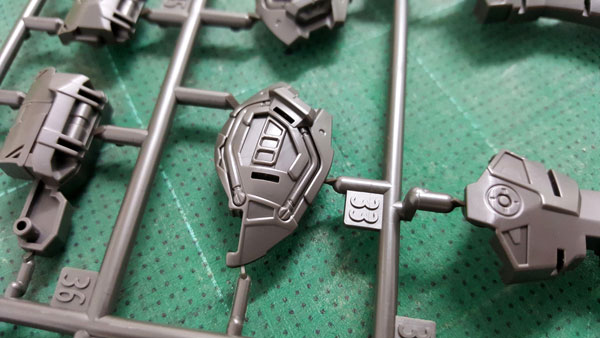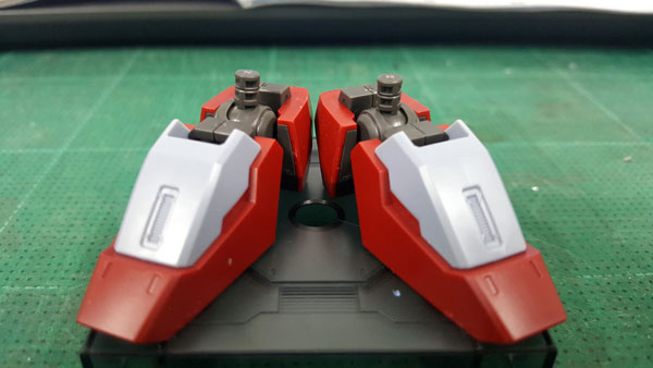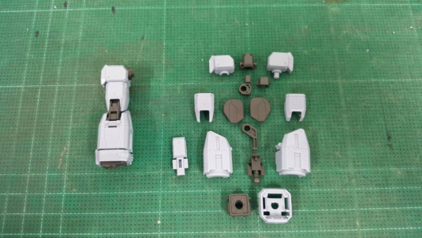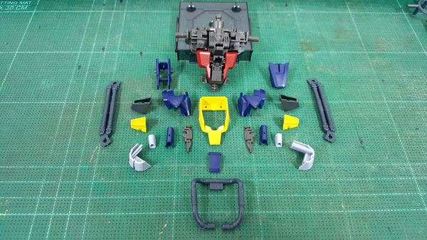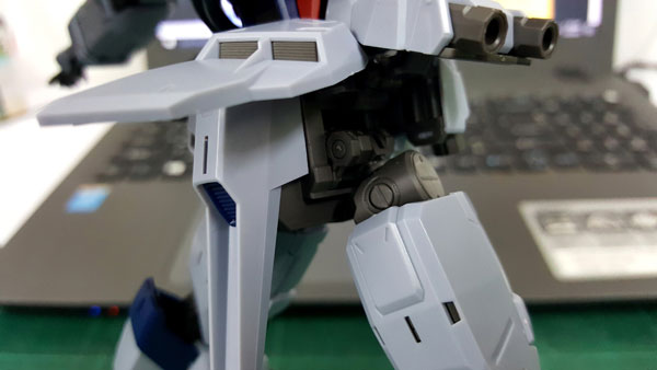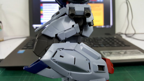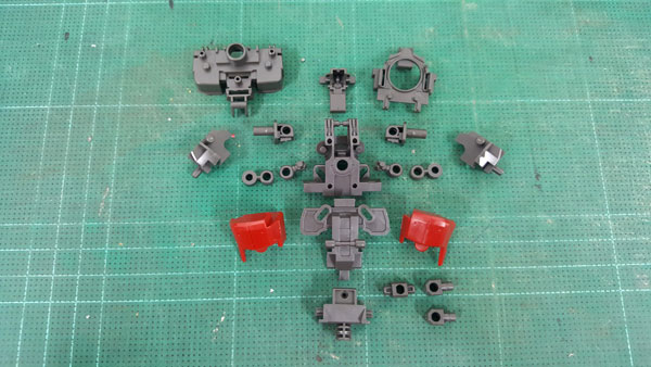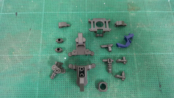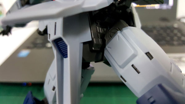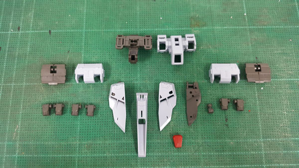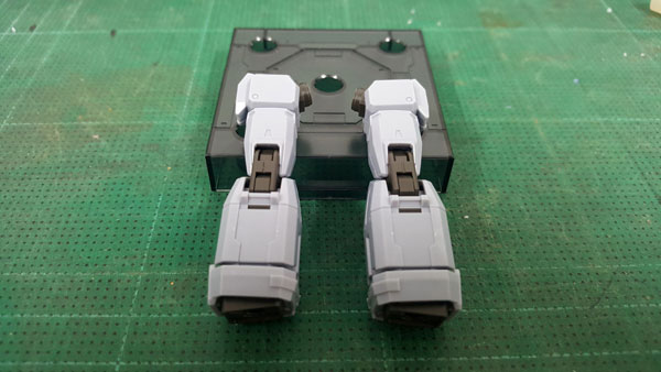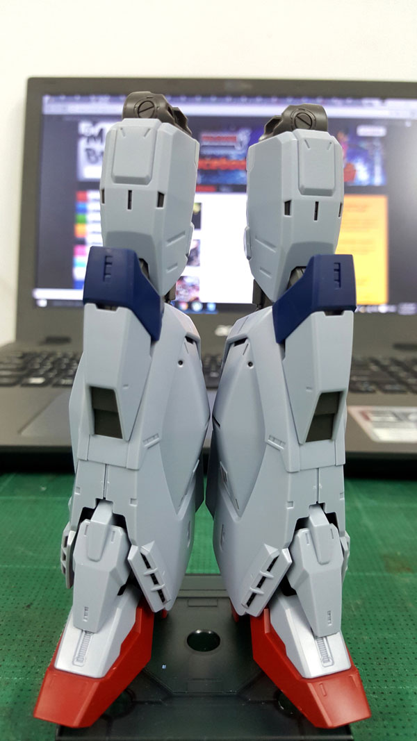 ในส่วนของขานั้น จะมีเฟรมด้านในที่สามารถเอามาตั้งได้เลยโดยไม่ต้องประกอบเกราะด้านนอก แต่จะไม่มีดีเทลอะไรเลย เพราะเป็นเหมือนส่วนยึดเอาไว้ยึดตัวเกราะมากกว่า