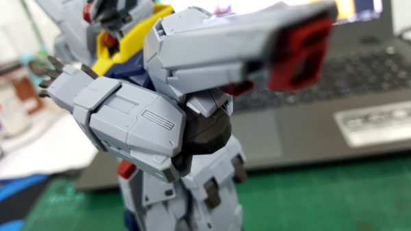 อย่างที่สองคือ ข้อต่อตรงแขนนี่และครับ มันสามารถยืดออกมาได้ ทำให้เราสามารถถือปืนได้ เพราะถ้าไม่ยืดออกจะไม่สามารถถือได้เลยครับ เพราะข้อมือ มันจะหักได้ไม่สุด ทั้งนี้คิดว่า ทางลุงแกคงตั้งใจออกแบบมาให้เป็นแบบนี้เลย