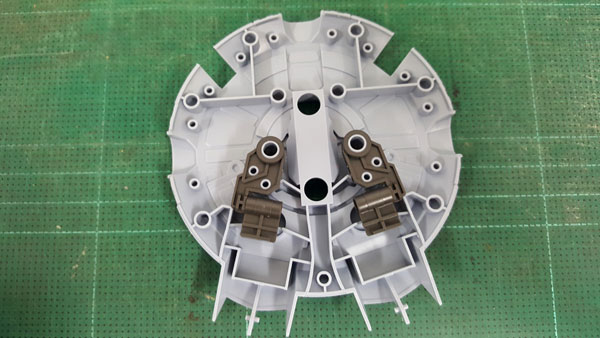 ในส่วนของชิ้นที่เอาไว้ยึดท่อไอพ่นด้านล่างก็จะมีการออกแบบให้ข้อต่อสามารถขยับได้เยอะ และหมุนขึ้น-ลงได้