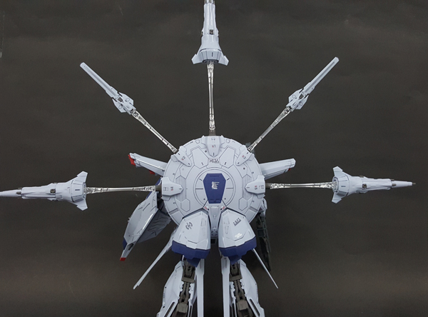 แบ็คแพ็คเป็นส่วนที่เป็นจุดเด่นที่สุดของ Provident Gundam เลยก็ไม่ผิด เพราะถ้าไม่มีชิ้นนี้ ก็จะไม่มีอะไรเด่นเลย แถมไม่มีความอลังการหรือความเท่เลย ดันนั้นก้จะเห็นได้ถึงความใส่ใจเรื่องดีเทลและลายระอียดที่แกะมาให้บนชิ้นส่วนนี้
