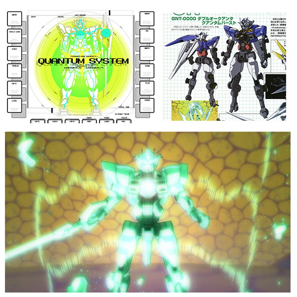 OOQ / OO Qan[T] / OO Quantaรหัสเครื่อง GNT-0000 กันดั้มประจำตัวเครื่องสุดท้ายของพระเอกมาดเข้ม “เซ็ตสึนะ เอฟ เซเอย์” ที่ปรากฏในภาค The Movie (Awakening of Trailblazer) เป็นหุ่นวิวัฒนาการสูงสุดที่พัฒนาต่อๆมาจาก Gundam Exia และ OO Gundam