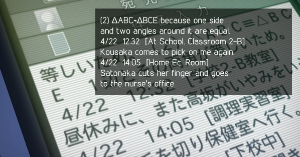 เด็กสาวเพื่อนร่วมห้องของยูกิ ผู้ครอบครอง “บันทึกแห่งความรัก” ที่จะแสดงข้อมูลเกี่ยวกับยูกิทุกๆ 10 นาที เธอมีผลการเรียนยอดเยี่ยมและมีรูปร่างหน้าตาที่สวยจนทุกคนในโรงเรียนต่างหลงไหล มักเรียนยูกิว่า “ยุกกี้” แต่ภายใต้รูปลักษณ์ที่สมบูรณ์แบบของเธอ ได้แอบซ่อนไว้ซึ่งเรื่องราวน่าสะพรึมกลัว