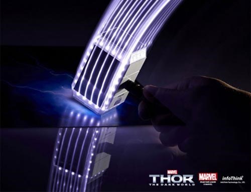 ค้อน Mjolnir ตัวนี้เป็นผลิตผลจากบริษัท Infothink ไม่ได้สร้างมาให้เราเอามาปราบเหล่าร้ายแต่อย่างใด แต่เป็นแบตเตอรี่เสริมขนาดพกพาที่มีรูปทรงออกแบบมาให้เหมือนกับค้อนของเทพ Thor ตามลิขสิทธิ์ของ Marvel และนอกจากนี้ยังสามารถใช้ค้อน Thor ฟาดลงไปตรงไหนก็จะได้ยินเสียงซาวด์เอฟเฟกต์แบบในหนังอีกด้วย ระหว่างฟาดก็จะมีไฟ LED ประกอบเพื่อความอลังการชวนให้ตื่นตาตื่นใจ โดยตัวค้อนมาพร้อมขนาด13x8x5 ซม.และน้ำหนัก 450 กรัมซึ่งคุณสามารถเสียบสายเชื่อมต่อเพื่อชาร์จแบตเตอรี่ได้ทั้งสมาร์ทโฟนหรือแท็บเล็ตก็ย่อมได้ (พอร์ต 2.1 แอมป์)
