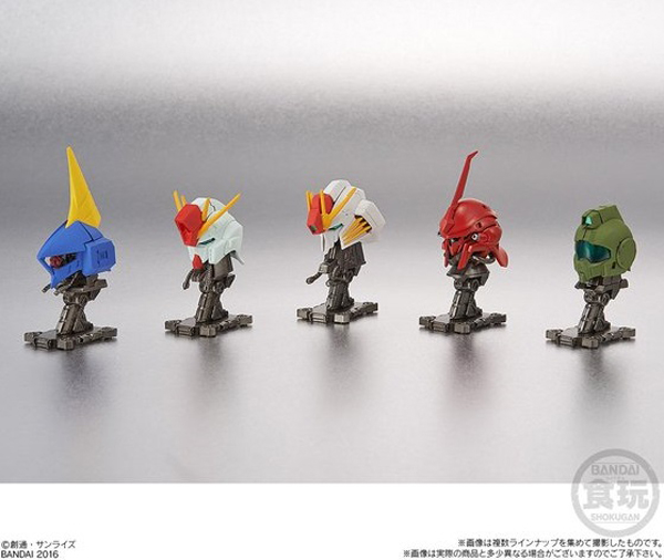 กันดั้ม แมชชีนเฮด ชุดนี้จะมีทั้งหมด 5 แบบ โดยไม่ต้องไป “Random” ให้เสียเวลา เพราะที่หลังกล่องจะมีเครื่องหมายบอกอยู่ว่า ในกล่องเป็นตัวไหน ดังนั้นเวลาซื้อก็สามารถเลือกได้เลยว่าจะเอาตัวไหน แต่ถ้าจะให้ดีก็ซื้อแบบยกชุดไปเลยครับ จะเป็นการง่ายที่สุด