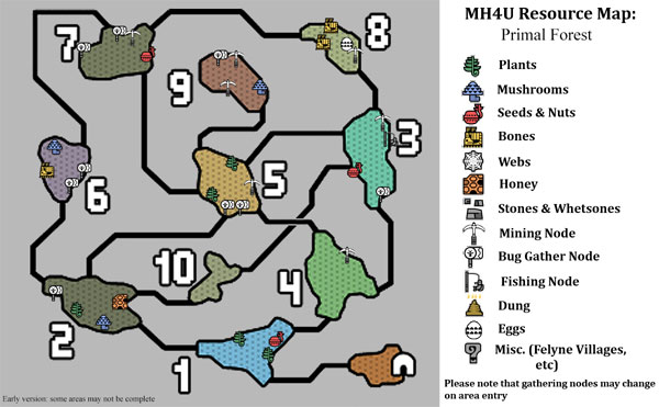 แผนที่ มอนสเตอร์และตำแหน่งเก็บวัตถุดิบ