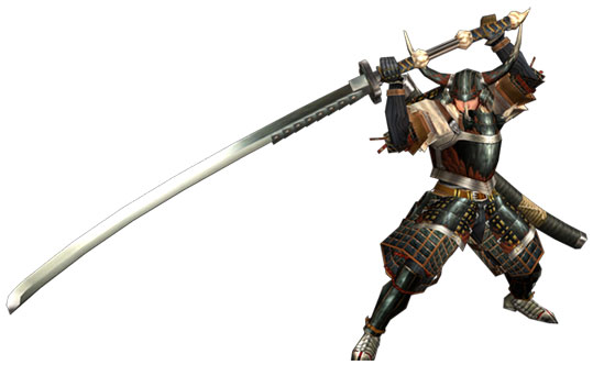 ดาบคาตานะ อาวุธที่เน้นการสร้างดาเมจต่อเนื่อง มีความคล่องตัวในการออกท่าและดาเมจที่รุนแรง แต่ผู้เล่นต้องจับจังหวะกลิ้งหลบให้ดีเพราะดาบชนิดนี้ไม่มีท่าป้องกัน เมื่อฟันดาเมจสะสมพลังจนเต็มจะสามารถระเบิดคอมโบฟันต่อเนื่องชุดใหญ่ และถ้าฟันโดนในดาบสุดท้าย จะเป็นการเพิ่มออร่าให้ตัวดาบทำให้พลังโจมตีที่สูงขึ้น และสามารถสะสมออร่าได้ 3 ระดับคือ ขาว เหลือง แดง