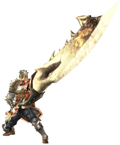 ดาบใหญ่ที่สร้างดาเมจได้แรงสะใจแต่แลกมากับการเคลื่อนไหวที่เชื่องช้า แต่ดาบใหญ่ก็สามารถใช้ยกขึ้นมาป้องกันแทนโล่ได้ การใช้งานจริงผู้เล่นจำเป็นต้องฝึกการกลิ้งตัวหลบออกข้างให้คล่อง และจับจังหวะการฟันแต่ละครั้งให้ดี ถ้าได้จังหวะดีดีสามารถกดชาร์ตพลังเพื่อฟันอย่างรุนแรงได้