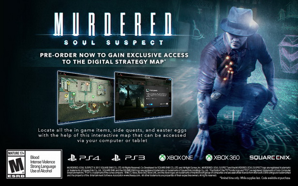 สำหรับผู้ที่สั่งซื้อเกม Murdered: Soul Suspect ล่วงหน้ากับทางตัวแทนจำหน่ายที่ร่วมรายการจะได้รับแผนที่ในรูปแบบ interactive digital สามารถดูได้บน PC และ Tablet ที่จะช่วยทำให้ผู้เล่นได้เข้าถึงความลับต่างๆมากมายของเมือง Salem ไม่ว่าจะเป็นการบอกรายละเอียดเควส ,ขอสะสมที่สามารถเก็บได้ระหว่างเล่น ฯลฯ