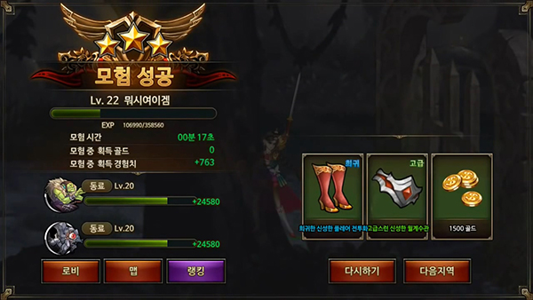 ฉากต่อสู้จะแบ่งความง่ายยาก หากเคลียร์ได้สามดาวจะได้ของรางวัลที่ดียิ่งขึ้น