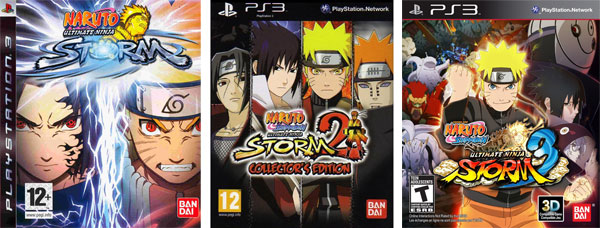 เกมส์ภาค Ultimate Ninja Storm นับเป็นเกมส์ที่ดีที่สุดของซีรี่นารุโตะก็ว่าได้ ผลิตโดยค่าย Cyber Connect รูปแบบการเล่นเป็นแนวต่อสู้ โดยศัตรูคือตัวละครที่ปรกกฎตามเนื้อเรื่องต้นฉบับ หลังจากสู้ชนะก็จะเจอกับคัทซีนสวยๆตามเนื้อเรื่อง โดยแต่ละภาคจะดำเนินเรื่องตามฉบับการ์ตูนเป๊ะ และตัดจบในเหตการณ์ตอนล่าสุดที่กำลังตีพิมพ์อยู่ในขณะนั้น