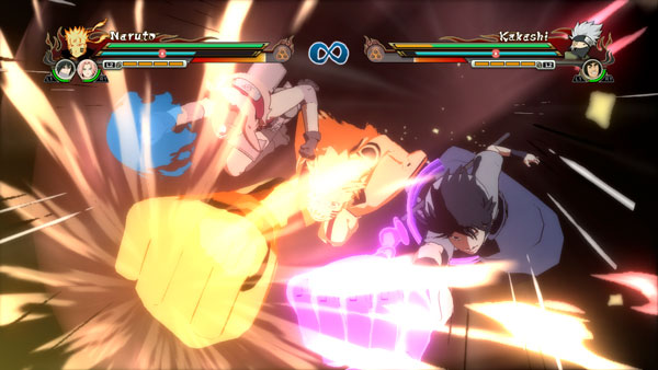 ถ้าเลือกเล่นโหมด Ultimate Jutsu Type จะมีความพิเศษกว่าโหมดอื่น ตรงที่เราสามารถจับคู่ตัวละครที่มีความผูกพันกันตามเนื้อเรื่องมาอยู่ในทีมเดียวกัน จะสามารถใช้ท่าไม้ตายสุดยอดเฉพาะคู่ตัวละครได้ โดยกด ![]()