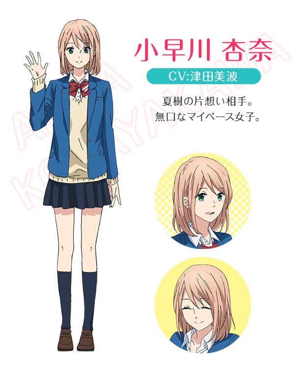 โคบายาคาวะ อันนะ เด็กสาวที่ใจดีและอ่อนโยนแถมยังชอบทานขนมหวานมาก แต่โดยปกติแล้วมักจะเป็นคนเงียบๆและยังทำหน้านิ่งๆอยู่ตลอดทำให้ไม่ค่อยมีเพื่อน ในวันที่นัตสึกิอกหักจากการถูกแฟนทิ้ง อันนะซึ่งทำงานพิเศษอยู่บริเวณนั้นได้เห็นและเป็นคนยื่นทิชชู่ให้กับนัตสึกิ แถมทั้งคู่ยังบังเอิญอยู่โรงเรียนมัธยมเดียวกันอีกด้วย