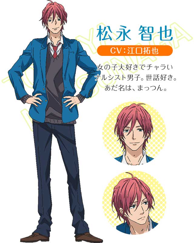 มัตสึทากะ โทโมยะ (มัตซึน) เพื่อนของนัตสึกิ เด็กหนุ่มเพลย์บอย เจ้าชู้ และเสน่ห์แรงจะมีผู้หญิงรายล้อมอยู่ตลอดเวลาแถมยังทำขนมเก่งอีกต่างหาก ในตอนแรกโทโมยะมักจะชอบชวนมาริทะเลาะอยู่เป็นประจำ แต่แล้วสุดท้ายเขากลับมาชอบมาริซะอย่างนั้น โทโมยะหวงน้องสาวมากจะไม่ยอมให้ใครทำน้องสาวเสียใจหรือร้องไห้เด็ดขาด