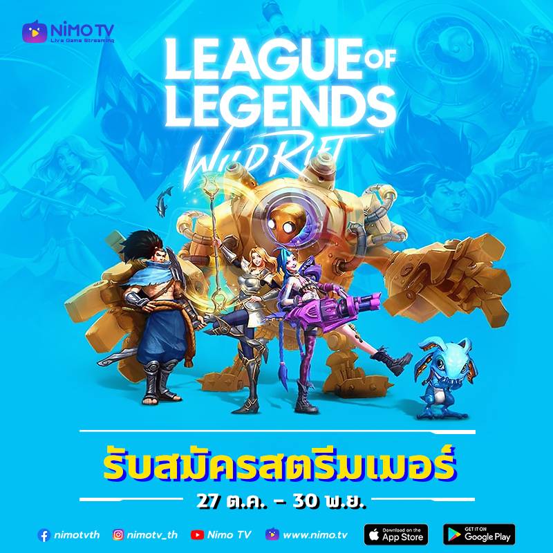 เตรียมพร้อมแล้วสำหรับการเปิดให้บริการเกม MOBA บนมือถือที่หลายคนรอคอยอย่าง League of Legends: Wild Rift ซึ่งจะเปิดให้บริการในวันที่ 27 ตุลาคมนี้ และทาง Nimo TV แพลทฟอร์มยอดนิยมสำหรับการสตรีมเองก็ไม่รอช้า จัดกิจกรรมสุดพิเศษต้อนรับเหล่าสตรีมเมอร์ และผู้ชมที่มีใจรักในเกม League of Legends: Wild Rift ให้ได้ร่วมสนุก และลุ้นรับรางวัลกันแล้ว