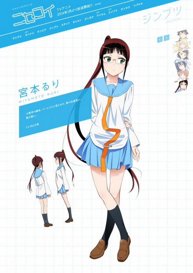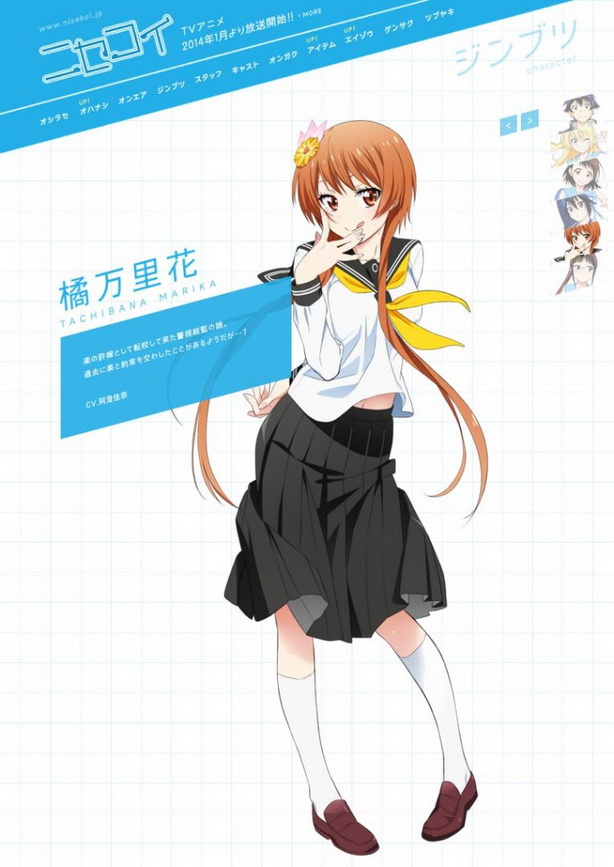 สาวน้อยม. ปลายปีหนึ่งที่ย้ายเข้ามาใหม่อีกคน และเป็นถึงลูกสาวของผู้บัญชาการกรมตำรวจ นิสัยอ่อนหวานกับเฉพาะราคุเท่านั้น ไม่ถูกชะตากับจิโตเงะอย่างแรง แต่เรื่องที่น่าช็อกยิ่งกว่านั่นก็คือ… เธอเป็นเด็กผู้หญิงที่ราคุเคยรู้จักในสมัยเด็กๆ (ซึ่งราคุเองก็จำอะไรไม่ได้เลย) เป็นคู่หมั้นหมายที่แท้จริงของราคุ รวมไปถึงยังมีกุญแจคำมั่นสัญญา(รูปหัวใจ)อยู่ด้วย!?