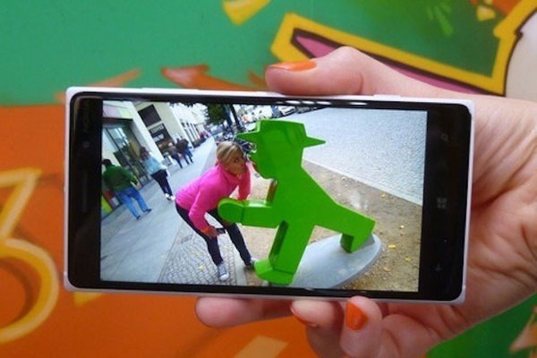 ส่วนโหมด Nokia Camera เลือกได้จากแอพลิเคชั่นจากหน้าจอแสดงผลโดยตรง ซึ่งกล้องจะโชว์ หน้าต่างภาพเต็มจอ พร้อมหน้าต่างการตั้งค่าเมนูการถ่ายภาพเพิ่มเติมเป็นแถบสีเทาที่ข้างขวาของจอมอนิเตอร์ อาทิ การเปิดใช้แฟลช , การตั้งไวท์บาลานซ์ , การปรับตั้งความไวแสง , การปรับชดเชยแสง เป็นต้น แต่ยังสามารถเลือกรูปแบบอัตโนมัติอย่าง Scene Mode เช่น Auto , Night หรือ Sport ได้ การใช้งานก็เพียงแค่แตะที่เมนูที่ต้องการ กล้องจะโชว์การปรับตั้งเป็นวงกลมที่ต้านล่างของจอมอนิเตอร์ การปรับเลือกค่าที่ต้องการทำได้โดยแตะ และเลื่อนนิ้วไปตามค่าที่ต้องการตามแนวโค้งเท่านั้นเอง จากนั้นก็แตะเมนูอีกครั้ง เพื่อยืนยันการทำงาน และกดชัตเตอร์ถ่ายภาพได้เลยครับ รูปแบบการถ่ายภาพไนโหมดนี้ เลือกได้ 3 รูปแบบคือ โหมดถ่ายภาพต่อเนื่อง โหมด่ายภาพนิ่ง และโหมดยันทึกวีดีโอ