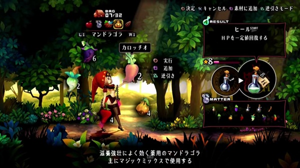 หรือเลเวลอาวุธ ความแรงในการโจมตี ท่าคอมโบใหม่ๆ สามารถพัฒนาได้ด้วยการ ดูดเอา “Phozon” ที่ได้จากการจัดการกับศัตรู หรือจากการผสมยา