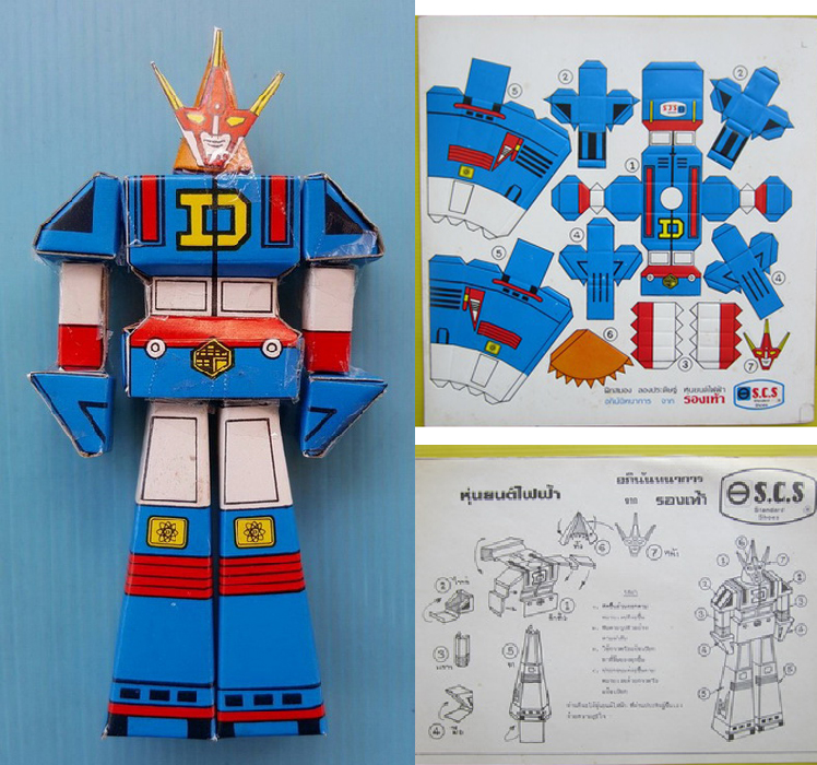 “ฝึกสมอง ลองประดิษฐ์ หุ่นยนต์ไฟฟ้า อภินันทนาการ จาก รองเท้า S.C.S” ย้อนไปไกลถึงช่วงกลางยุค 80 ซักนิด กับ หุ่นยนต์ไฟฟ้า ที่ไม่ได้เป็นหุ่นที่ใช้ไฟฟ้า หรือพลังงานแบตเตอร์รี่ แต่มันมาจาก ขบวนการมนุษย์ไฟฟ้าเดนจิแมน โดยสินค้าของแถมมากับรองเท้า S.C.S ที่จัดโปรรองเท้าลำลองเที่ยว+รองเท้านักเรียน ซึ่งครบกำหนด ก็จะได้ “แผงกระดาษแข็ง” พิมพ์ลาย “ไดเดนจิน” หุ่นยนต์กระดาษตัดแปะงานเปเปอร์คราฟท์สุดคลาสสิค เอาน่า ยุคนั้นโชโกคิน หุ่นเหล็กสังกะสีมีสปริงติดมือ มันแพง…ไม่สิ ทุกวันนี้มันก็ยังแพงนี่หว่า… 55