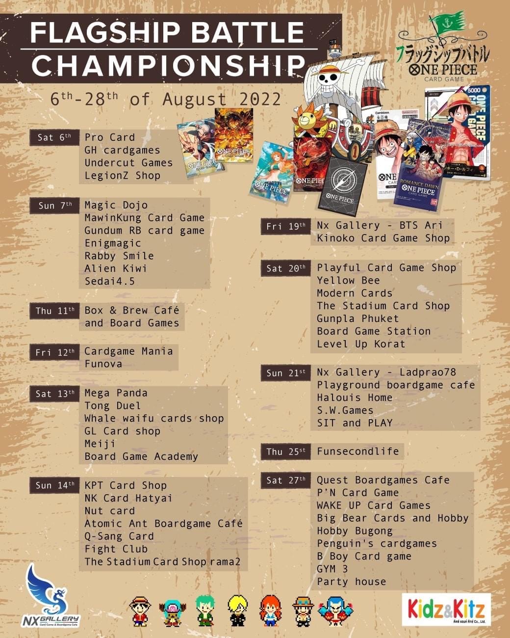 ใครที่สงสัยว่า การ์ดเกมวันพีซ ที่เราจัดกันมา ตามหา สะสม และซื้อขายกันในราคาสูงๆเนี่ย จัดเสร็จแล้ว จะเอาไปลงแข่งที่ไหนได้บ้าง ทางเราเลยรวบรวมมาอัพเดทให้ได้อ่านกัน