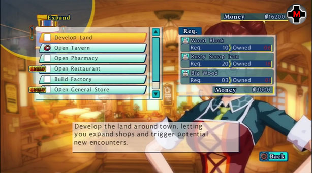ภายในเกมส์นอกจากจะสนุกกับเนื้อเรื่องหลักแล้ว สิ่งที่เสริมเข้ามาคือเรื่องราวของผู้คนภายในเมือง ที่แต่ละคนอยากที่จะเปิดร้านต่างๆเป็นของตัวเองซึ่งเราสามารถ สร้างร้านต่างๆในเมืองได้จากเมนู