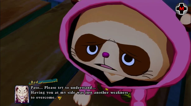 Pato พยายามถามเหตุผลจาก Red ผู้ทิ้งเขาเหมือนหมาข้างถนน คำตอบที่ได้จาก Red คือการจะเป็นใหญ่หากมีเจ้าทานุกิที่อ่อนแอแบบเจ้า มันจะทำให้ข้าอ่อนแอไปด้วย และตอนนี้ข้าได้พลังที่ยิ่งใหญ่มาไว้ในมือแล้ว ทานุกิอย่างเจ้าก็หมดประโยชน์