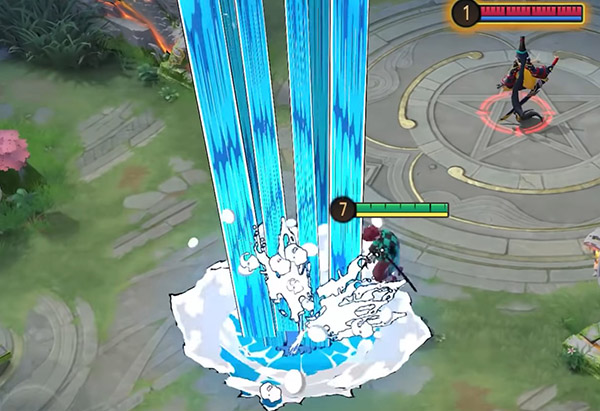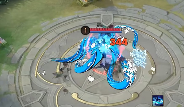 ทันจิโร่จะใช้ปราณวารีประเภท “โจมตี” เพื่อรุกไปยังไปยังทิศทางที่กำหนดสร้างความเสียหายให้กับศัตรูที่อยู่ในรัศมีเส้นโค้ง พร้อมนับ Stack ถอยหลัง 5 วิ เพื่อสามารถใช้สกิลซ้ำได้