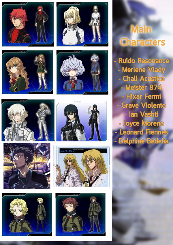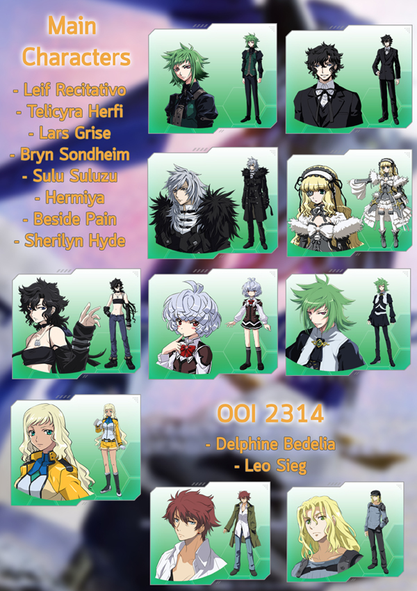 - Leif Recitativoเด็กหนุ่ม ม.ปลายอายุ 18ปี ผู้มีลำดับเบสเดียวกับ Ribbons Almark อินโนเวดผู้ตื่นขึ้นและรับภารกิจในการตามหาพวกพ้องจากเวด้า