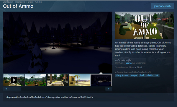 โดยตอนนี้เกม Out of Ammo และลงใน Steam ไปหมาดๆเมื่อวันที่ 16 เมษายน เป็น Early Access