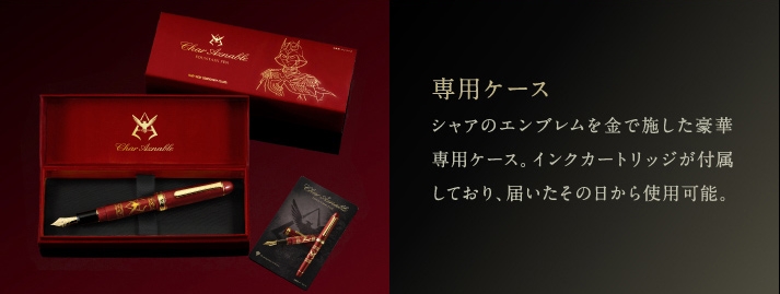 ปากการุ่นสั่งทำพิเศษ Char Aznable ที่มีการร่วมมือกันระหว่าง บริษัท SunStar กับ Platinum Fountain Pen โดยผลิตจากเทคโนโลยีขั้นสูง ซึ่งเป็นเทคนิคพิเศษเฉพาะของทางบริษัท เพื่อผลิตปากการุ่นนี้!!